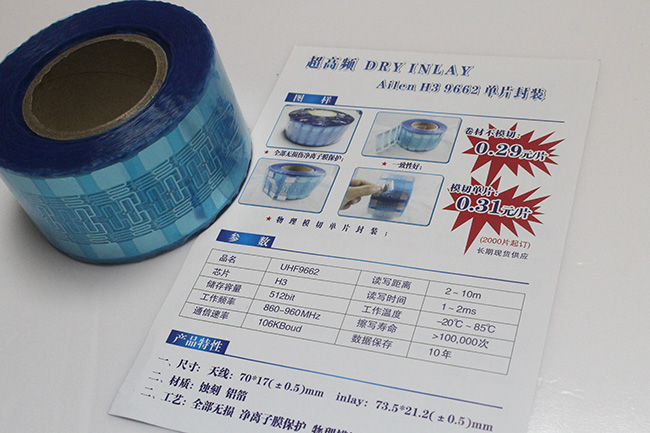 我司新近推出一款爆品:制卡專用超高頻干INLAY Ailen H3 9662。一口價:連體0.29元/